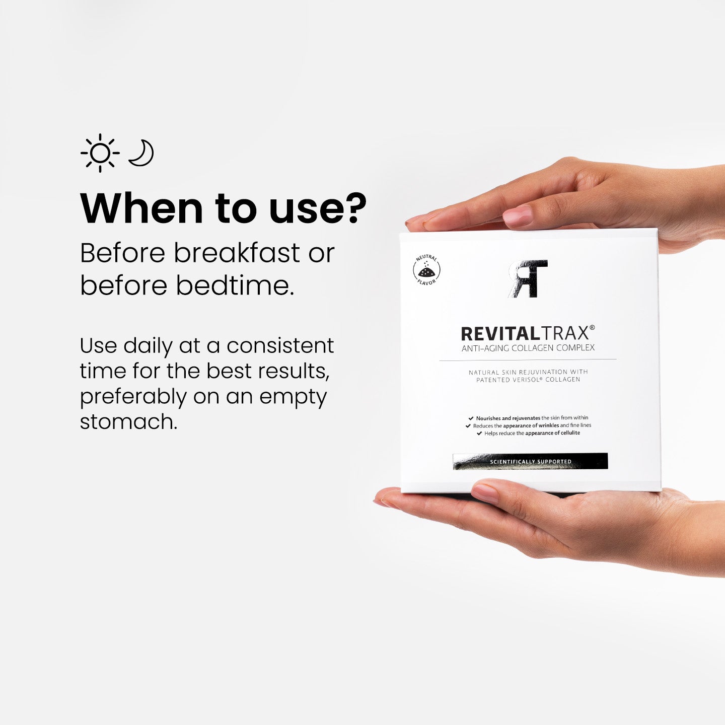 From the age of 25, the production of collagen in your body can already decrease, around this age we recommend using collagen as a supplement to your daily diet. It's never too late to start doing this. Even at a later age, for example from 65+, you can still use it!