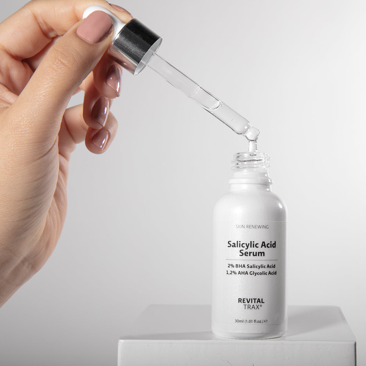 The 2% Salicylic Acid Serum combines BHA and AHA for deep exfoliation, removing dead skin cells and fighting clogged pores and impurities.