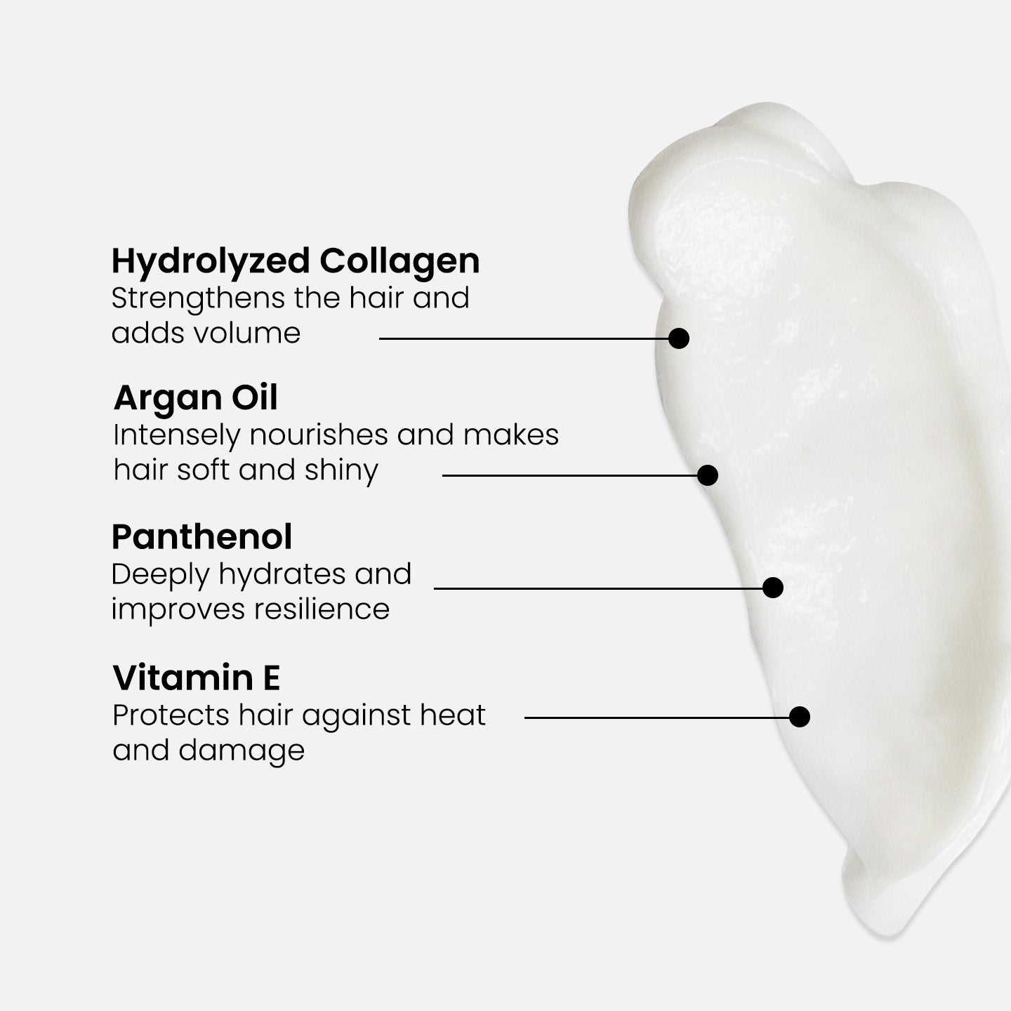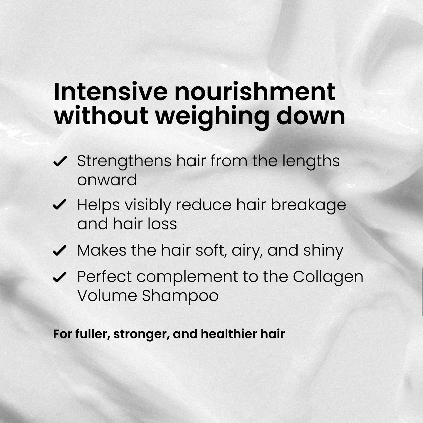The Collagen Volume Conditioner nourishes and improves your hair. It gives the hair intense nourishment, hydration and contributes to a long-lasting volume effect.