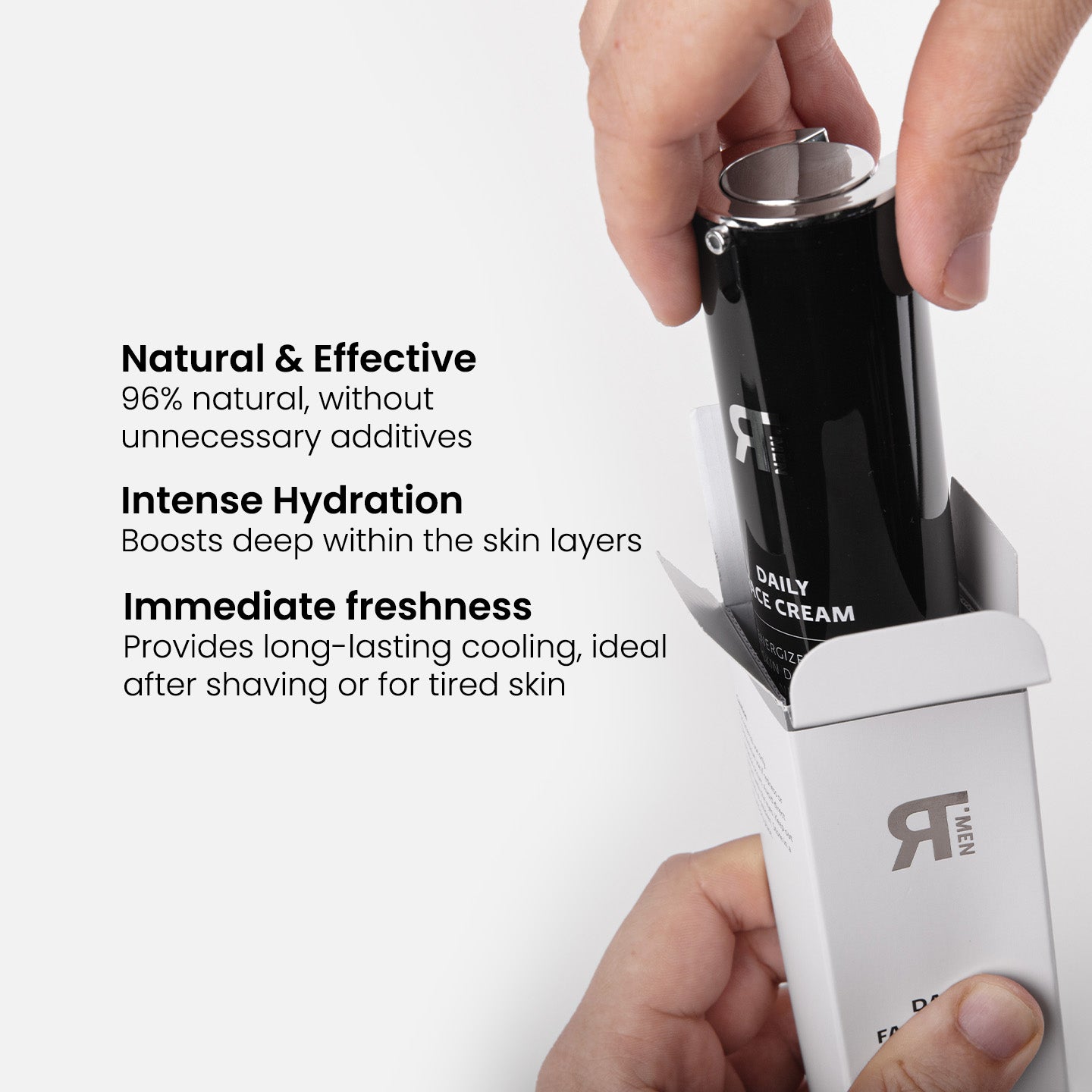 Apply an appropriate amount of the cream to your fingertips and gently massage onto your face and neck. For best results, use the Daily Face Cream in both the morning and evening. To do so, use the Daily Face Wash for Men and the Daily Face Lotion for Men.