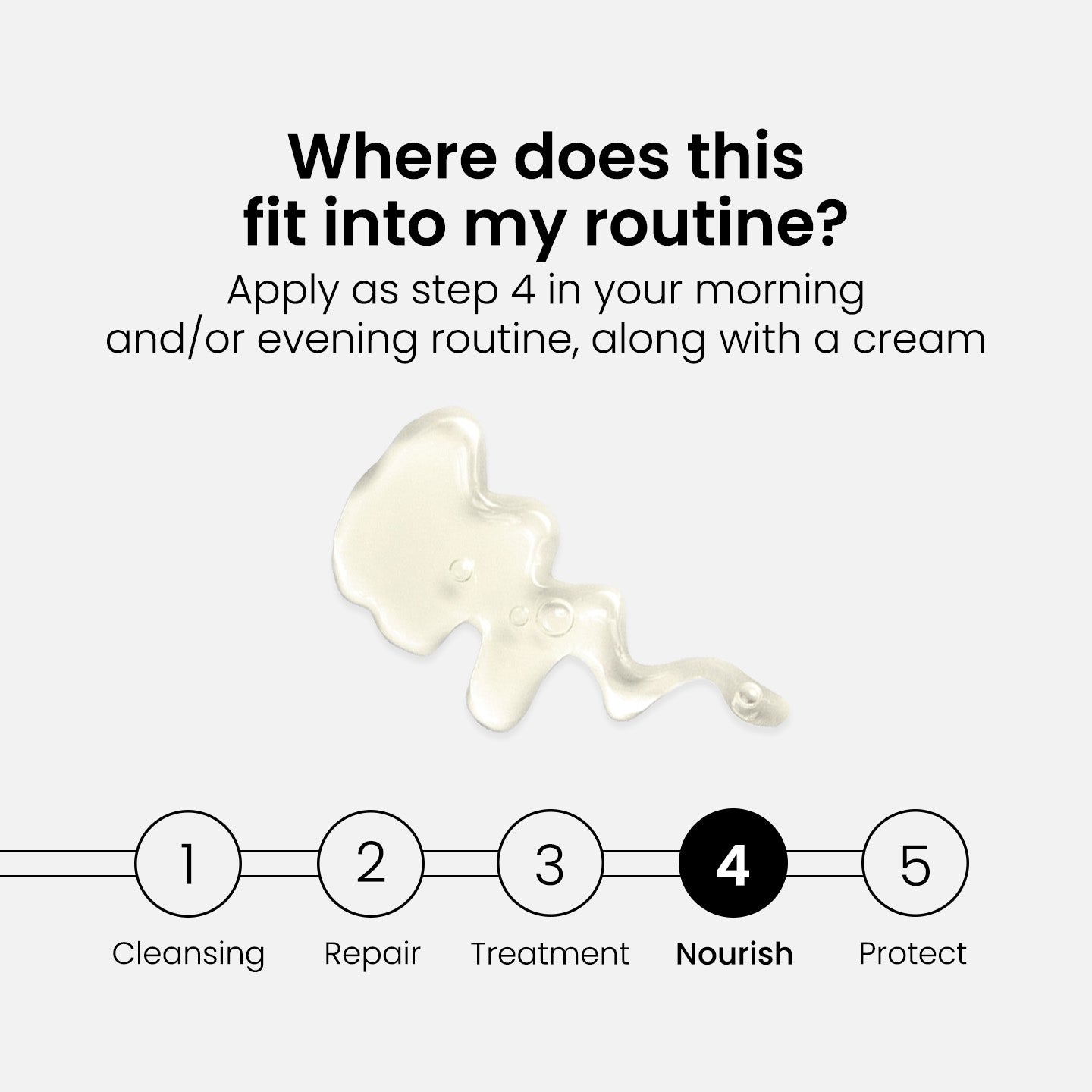 Use a day or night cream to nourish your skin. Optionally, finish with our facial oil.