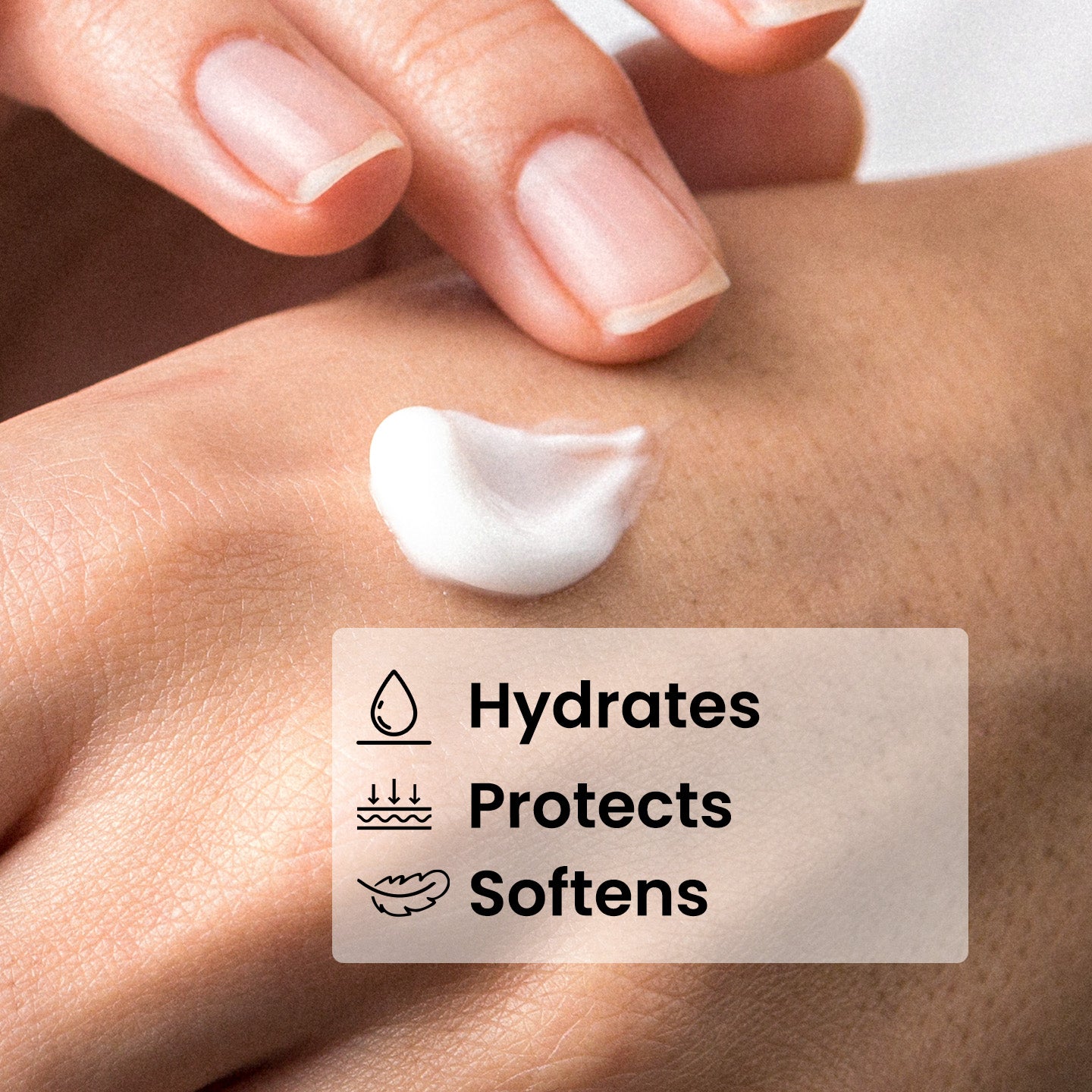 La Crema de Manos Ultra Rica nutre y suaviza la piel con una mezcla rica de glicerina, manteca de cacao y vitamina E. Proporciona una hidratación profunda, restaura la barrera cutánea y protege contra la sequedad y los signos de envejecimiento.